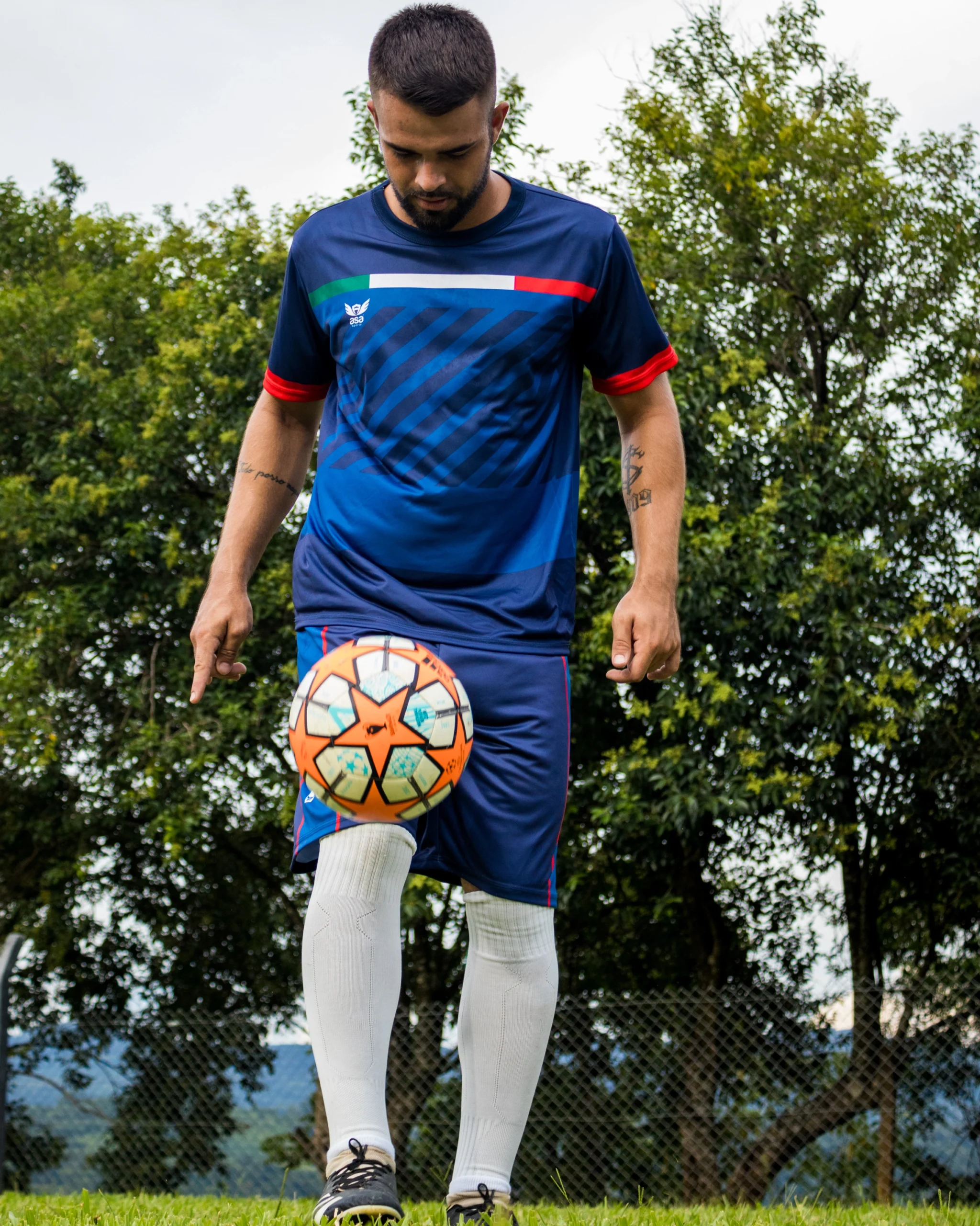 Usamos malha micro fibra Dry 100% poliéster com proteção UV 50+, ideal para alta performance. Com nossa tecnologia seu time terá um uniforme com secagem rápida, reduzindo a peridiocidade de jogos além de ser ultra leve para garantir maior performance dentro das quatro linhas.