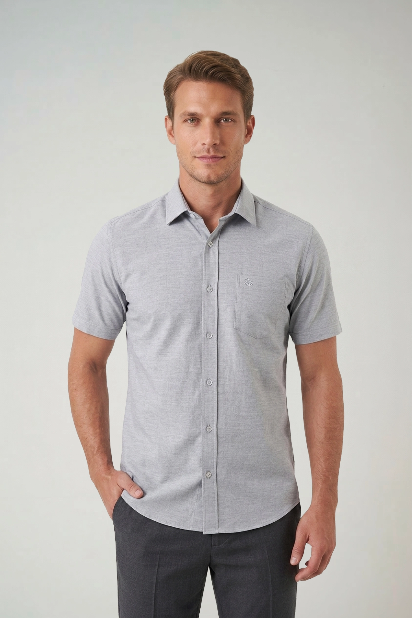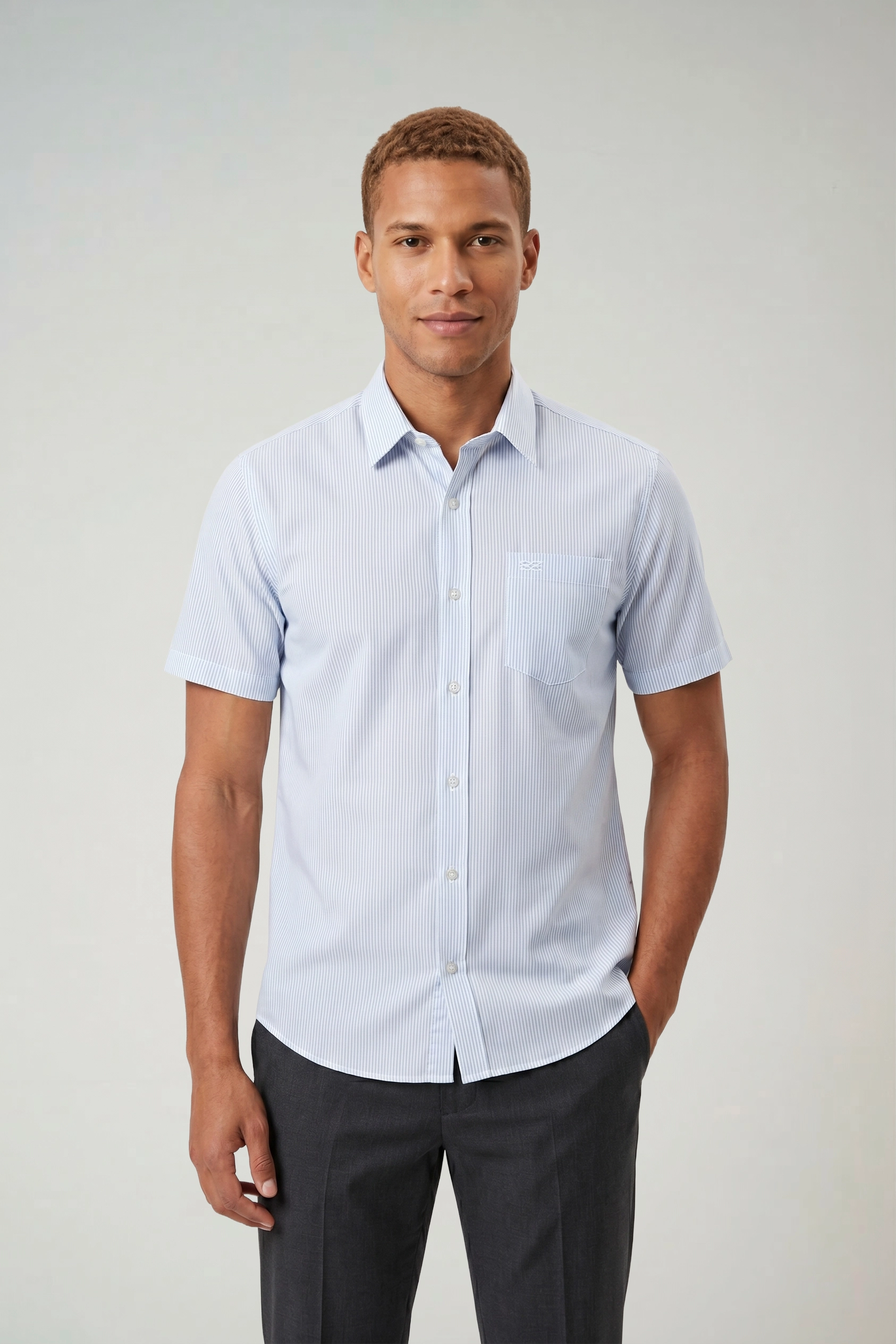 A Camisa Social Masculina de Manga Curta da Asa Uniformes foi desenvolvida para empresas e grupos exigentes que buscam um uniforme de alto padrão. Com um design liso, minimalista e aparência impecável, ela gera identidade, unidade e pertencimento à sua equipe. Confeccionada com os melhores tecidos, oferece uma textura super leve, unindo elegância clássica e conforto absoluto para o dia a dia corporativo.